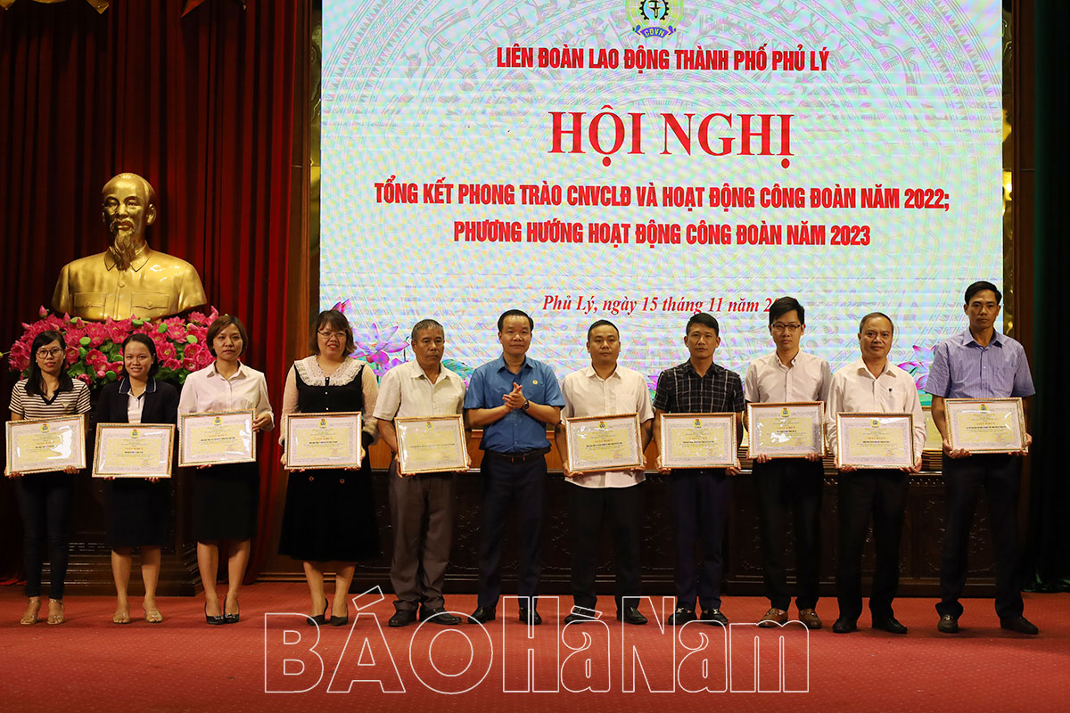 LĐLĐ thành phố Phủ Lý khen thưởng 23 tập thể, 33 cá nhân có thành tích xuất sắc trong phong trào thi đua năm 2022