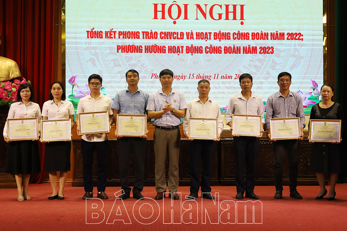 Tại hội nghị, 2 cá nhân được tặng Kỷ niệm chương Vì sự nghiệp xây dựng tổ chức công đoàn; LĐLĐ tỉnh tặng Cờ cho CĐCS Công ty TNHH May Kim Bình; bằng khen cho 3 tập thể, 3 cá nhân. 23 tập thể và 33 cá nhân được LĐLĐ thành phố tặng giấy khen.