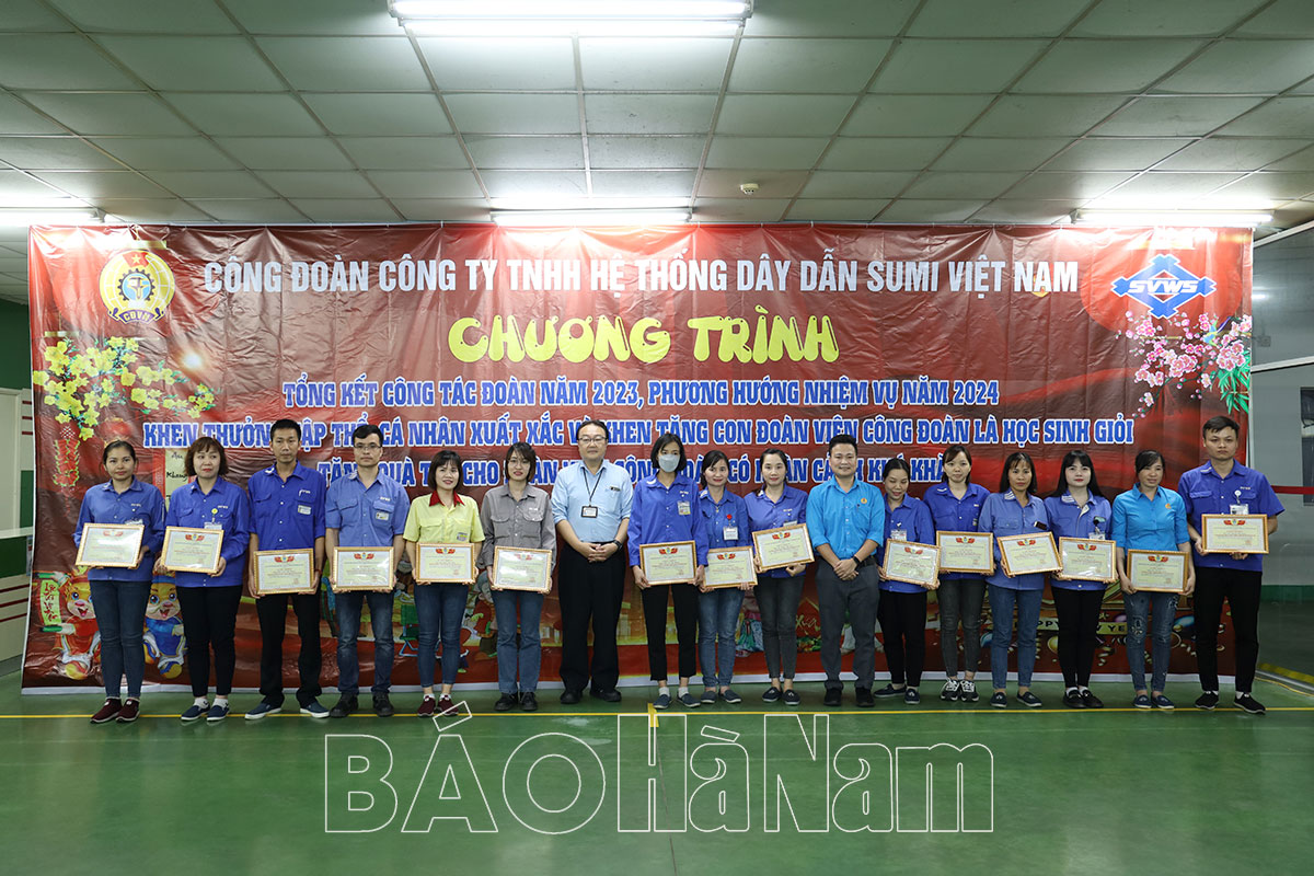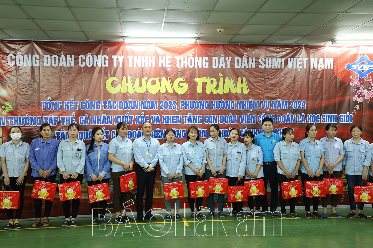 Tại chương trình, công đoàn Công ty TNHH Hệ thống dây dẫn Sumi Việt Nam tổ chức trao tặng 20 suất quà cho đoàn viên có hoàn cảnh khó khăn; khen thưởng 20 đoàn viên và 15 Ủy viên Ban chấp hành công đoàn xuất sắc trong hoạt động công đoàn và phong trào công nhân lao động năm 2023; tặng quà cho 20 học sinh là con công nhân lao động đạt thành tích cao trong học tập.