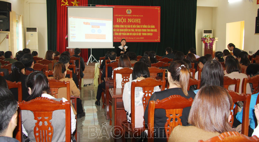 Tại hội nghị, các đại biểu được cán bộ Ban Tuyên giáo Tỉnh ủy truyền đạt nội dung chuyên đề về công tác tăng cường bảo vệ nền tảng tư tưởng của Đảng; đấu tranh, phản bác các quan điểm sai trái, thù địch trong tình hình mới; định hướng, tổng hợp phản ánh dư luận xã hội trong công nhân, viên chức, lao động…