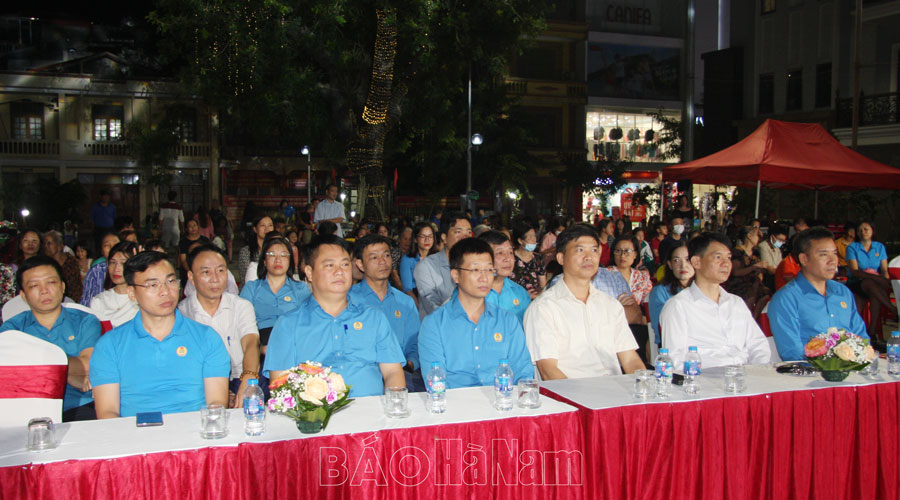 Tối 14/10, tại sân khấu ngoài trời phố đi bộ, đường Biên Hòa (thành phố Phủ Lý), Liên đoàn Lao động (LĐLĐ) tỉnh tổ chức Chương trình Nghệ thuật chào mừng thành công Đại hội Công đoàn tỉnh Hà Nam lần thứ XIII, nhiệm kỳ 2023 – 2028. Các đồng chí: Lê Thị Thanh Hà, Uỷ viên Ban Thường vụ Tỉnh ủy, Trưởng Ban Tuyên giáo Tỉnh ủy; Nguyễn Đức Toàn, Ủy viên Ban Thường vụ Tỉnh ủy, Bí thư Thành ủy, Chủ tịch HĐND thành phố Phủ Lý, cùng đông đảo cán bộ, đoàn viên, công nhân, viên chức, lao động (CNVCLĐ) tham dự chương trình .