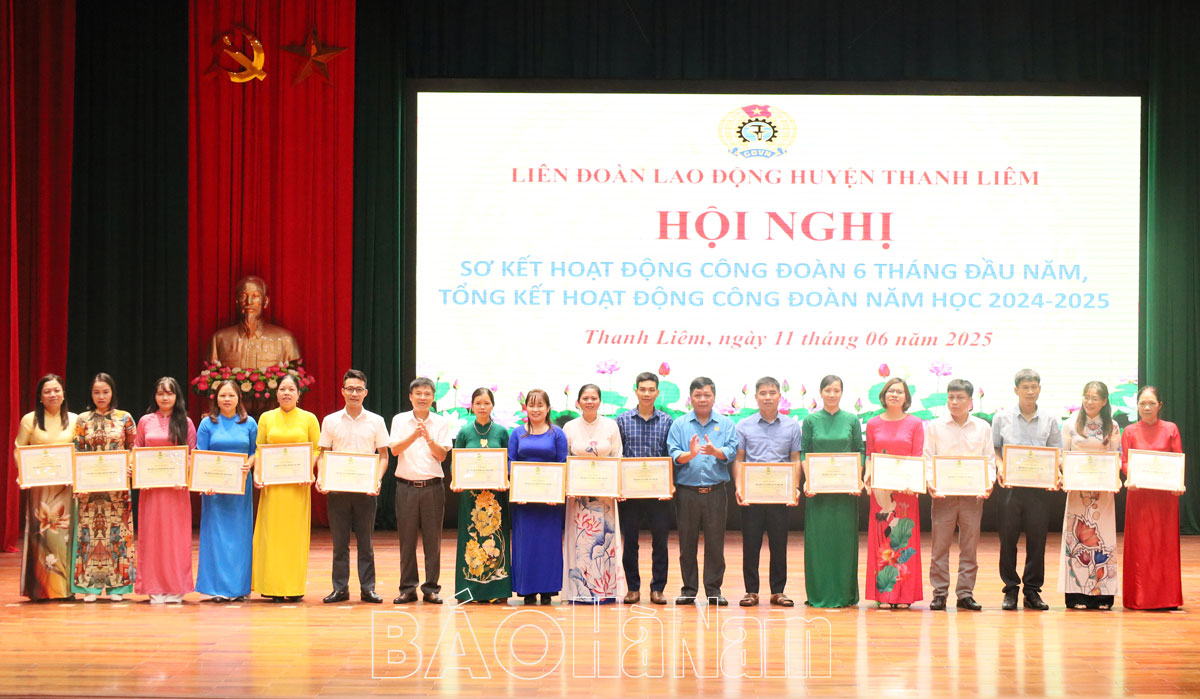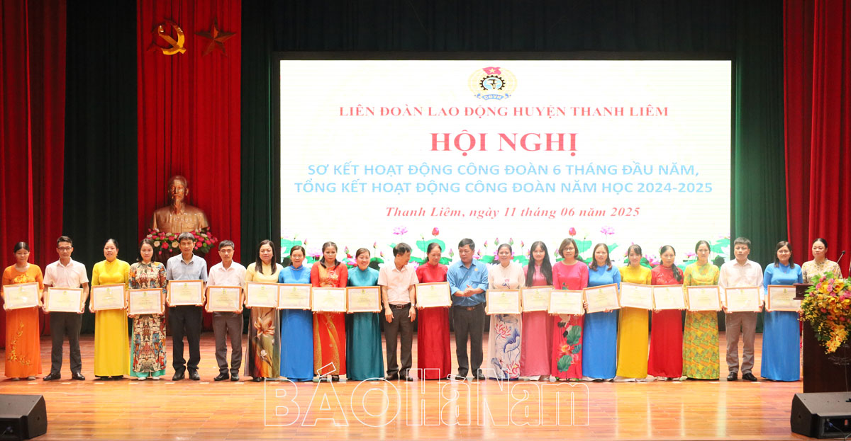 Sáng 11/6, Liên đoàn Lao động (LĐLĐ) huyện Thanh Liêm tổ chức sơ kết hoạt động công đoàn 6 tháng đầu năm, tổng kết hoạt động công đoàn năm học 2024-2025.