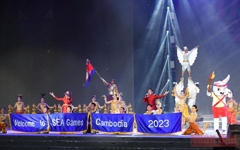 Các nghệ sĩ Campuchia đã gửi tới lễ bế mạc màn biểu diễn nghệ thuật chào mừng tới SEA Games 32 gồm: Nhạc múa "Rose of Phnom Penh", màn biểu diễn "Combat Spirit" của Liên đoàn Võ thuật Khmer, tiết mục "Contemporary Dance (White Pigeon Mascot)" của các nghệ sĩ Bộ Văn hóa và Nghệ thuật, và ca khúc "Cambodia Welcoming and Blessing Song".
