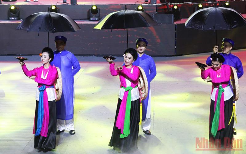 Lời "giã bạn" của nước chủ nhà SEA Games 31 - Việt Nam - bằng chùm bài hát Quan họ - Di sản phi vật thể thế giới được UNESCO công nhận - với những làn điệu: Mời trầu, Giã bạn và Người ơi người ở đừng về, qua phần trình bày của 100 nghệ sĩ dân ca quan họ Bắc Ninh.