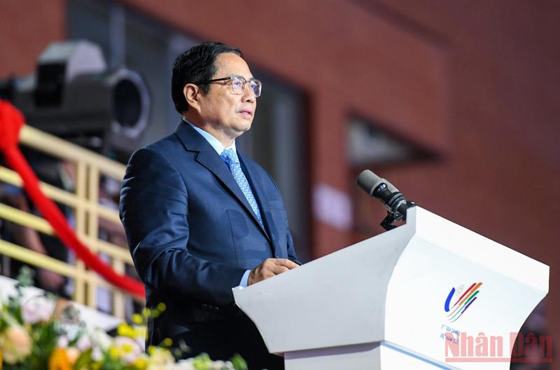 Phát biểu tại buổi Lễ, Thủ tướng Phạm Minh Chính khẳng định: Đất nước Việt Nam, Nhân dân Việt Nam những ngày qua rất vinh dự và vui mừng được chào đón các quý vị đại biểu, khách quý cùng hơn 10.000 vận động viên, huấn luyện viên, trọng tài đã về dự SEA Games 31 - Đại hội thể thao lớn nhất khu vực Đông Nam Á. Dịch bệnh Covid-19 đã buộc chúng ta phải lùi thời gian tổ chức SEA Games 31 từ tháng 11/2021 sang tháng 5/2022. Tuy nhiên, điều đó lại càng làm cho chúng ta tiến lại gần nhau hơn, đoàn kết hơn, nỗ lực hơn, quyết tâm hơn, hành động quyết liệt hơn, vượt lên tất cả khó khăn, thách thức vì tình yêu thể thao cao thượng để tổ chức thành công SEA Games 31.