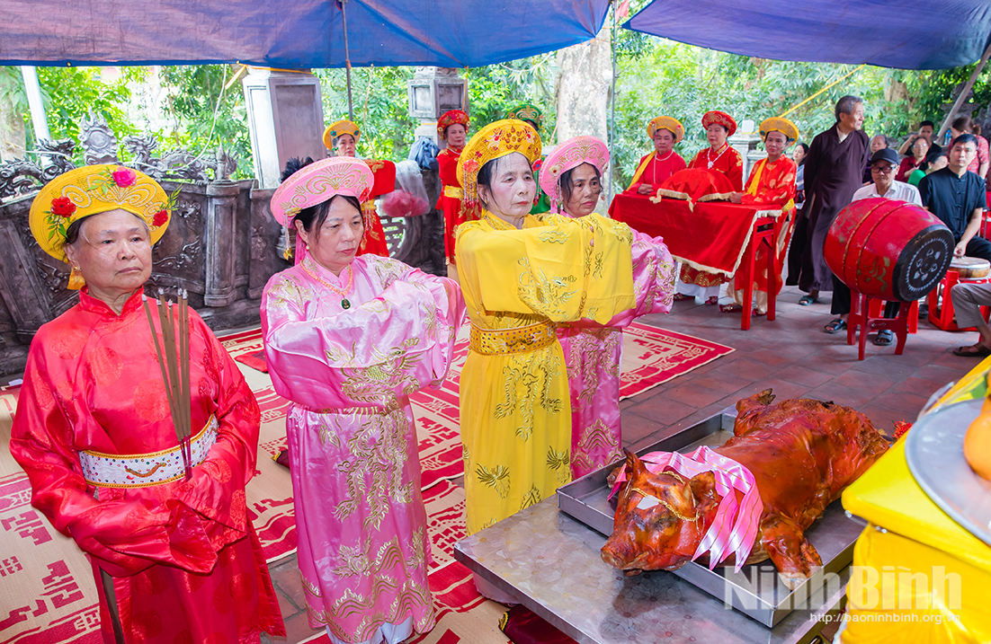 Chiều 26-4 (tức mùng 10-3 âm lịch), tại di tích lịch sử, văn hóa cấp tỉnh Đình - Phủ Phương Bông, Tổ dân phố 3 (phường Thiên Trường) diễn ra Lễ dâng hương tưởng niệm ngày mất Thánh Mẫu Trịnh Ngọc Đôi Công chúa.