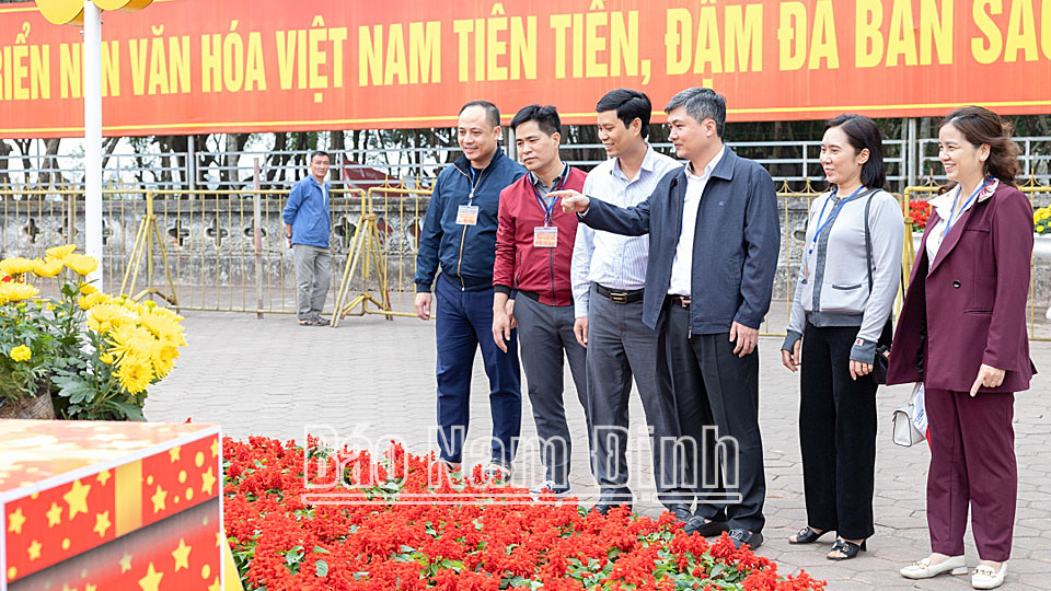 | Đồng chí Phạm Duy Hưng, TUV, Chủ tịch UBND thành phố Nam Định kiểm tra công tác chuẩn bị Lễ hội. |