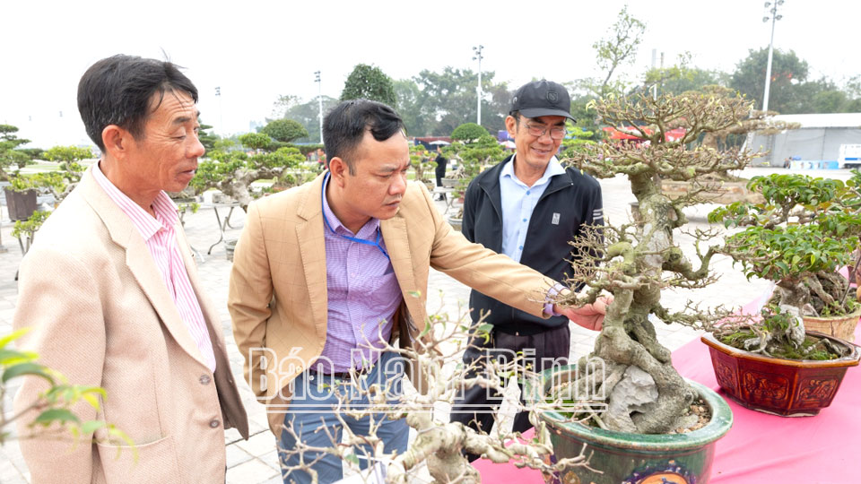 | Du khách tham quan triển lãm cây cảnh tại khu vực Đền Trần, phường Lộc Vượng. |