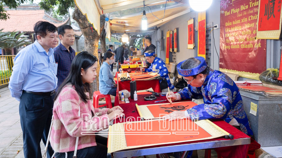 | Đông đảo du khách xin chữ đầu xuân tại Đền Trần. |