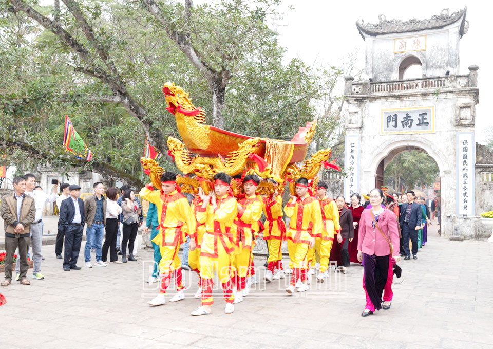 | Đoàn rước kiệu trong Lễ hội Khai ấn Đền Trần. |