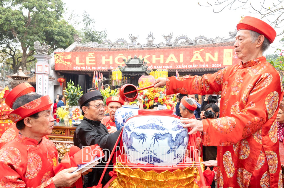 Lễ hội Khai ấn Đền Trần đầu xuân là một phong tục có từ lâu đời, thể hiện lòng tri ân của nhân dân đối với các vị vua Trần bằng nghi thức mô phỏng nghi lễ triều chính - ban dấu Ấn tín. Lễ hội Khai ấn Đền Trần Xuân Giáp Thìn 2024 sẽ được tổ chức từ ngày 20-2 đến ngày 25-2 (tức từ ngày 11 đến 16 tháng Giêng). Trong đó, ngày 11 tháng Giêng (20-2) tổ chức Lễ rước kiệu Ngọc Lộ.