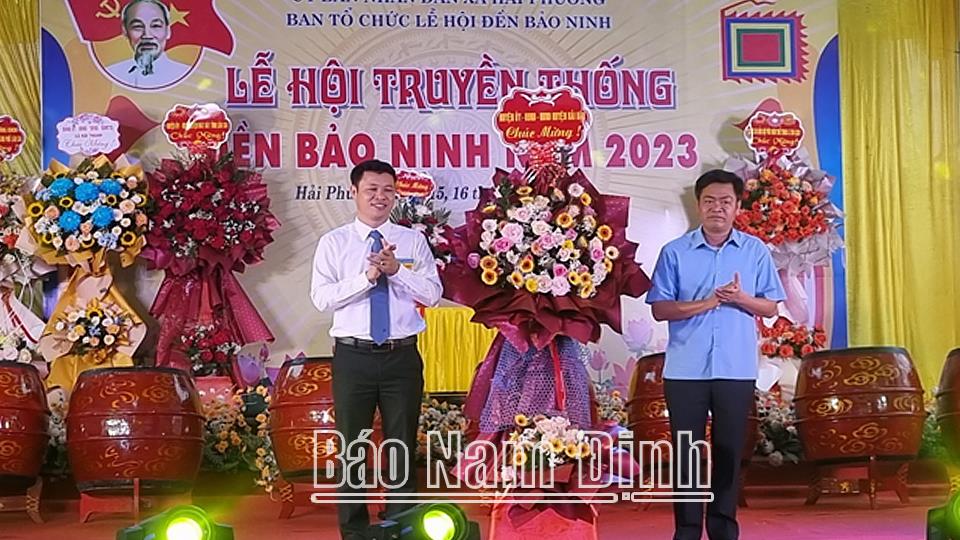 Sáng 15-4, UBND xã Hải Phương (Hải Hậu) tổ chức khai mạc lễ hội truyền thống Đền Bảo Ninh. Đại diện lãnh đạo Cục Di sản (Bộ Văn hóa, Thể thao và Du lịch), Huyện ủy, UBND huyện Hải Hậu cùng đông đảo người dân và du khách thập phương về dự.