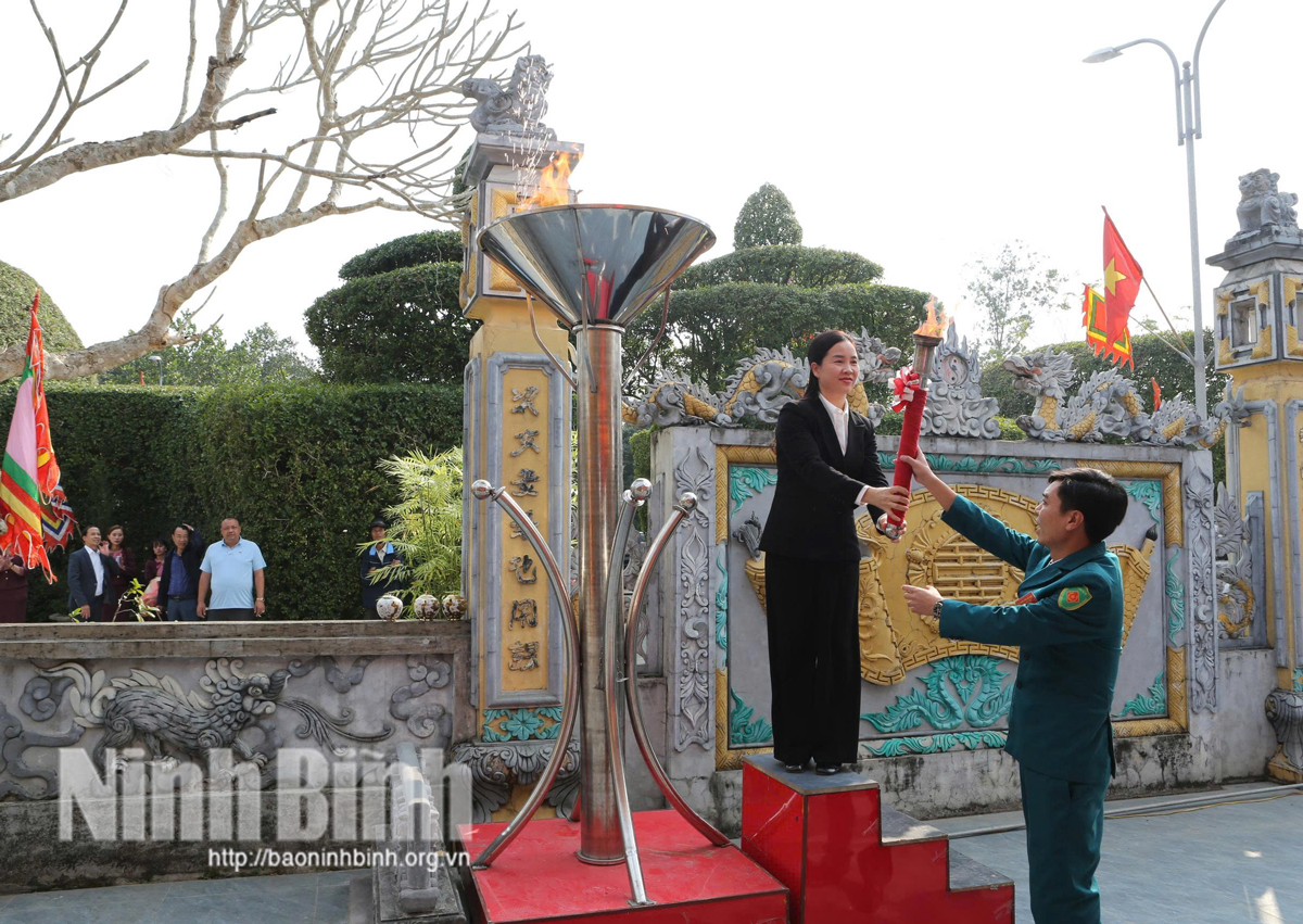 Đồng chí Trần Song Tùng, Ủy viên Ban Thường vụ Tỉnh ủy, Phó Chủ tịch Thường trực UBND tỉnh; lãnh đạo xã Tân Minh thực hiện nghi lễ dâng hương, tưởng niệm Kiến quốc công Trinh liệt phu nhân Lương Thị Minh Nguyệt và Kiến quốc công Trung dũng đại thần Đinh Công Tuấn.