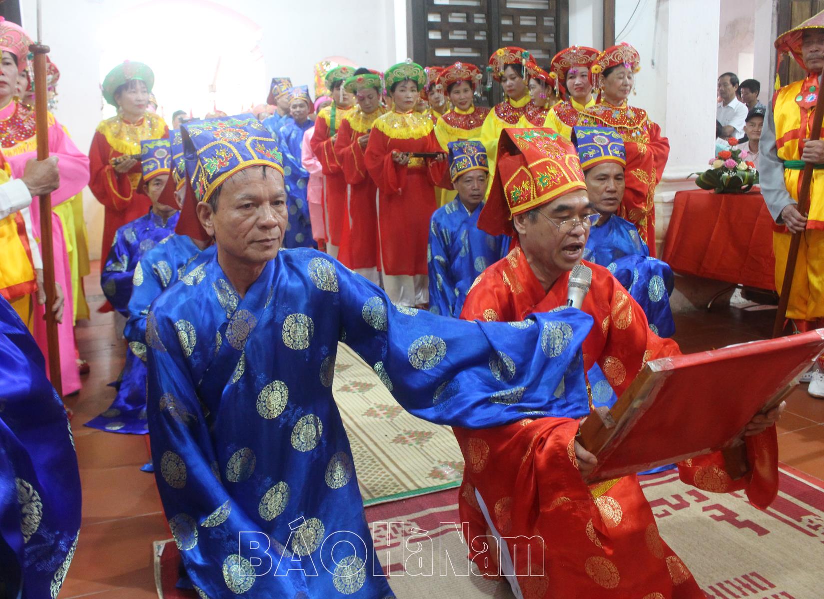 Các dòng họ trong thôn vào dâng lễ, dâng hương tại đình.