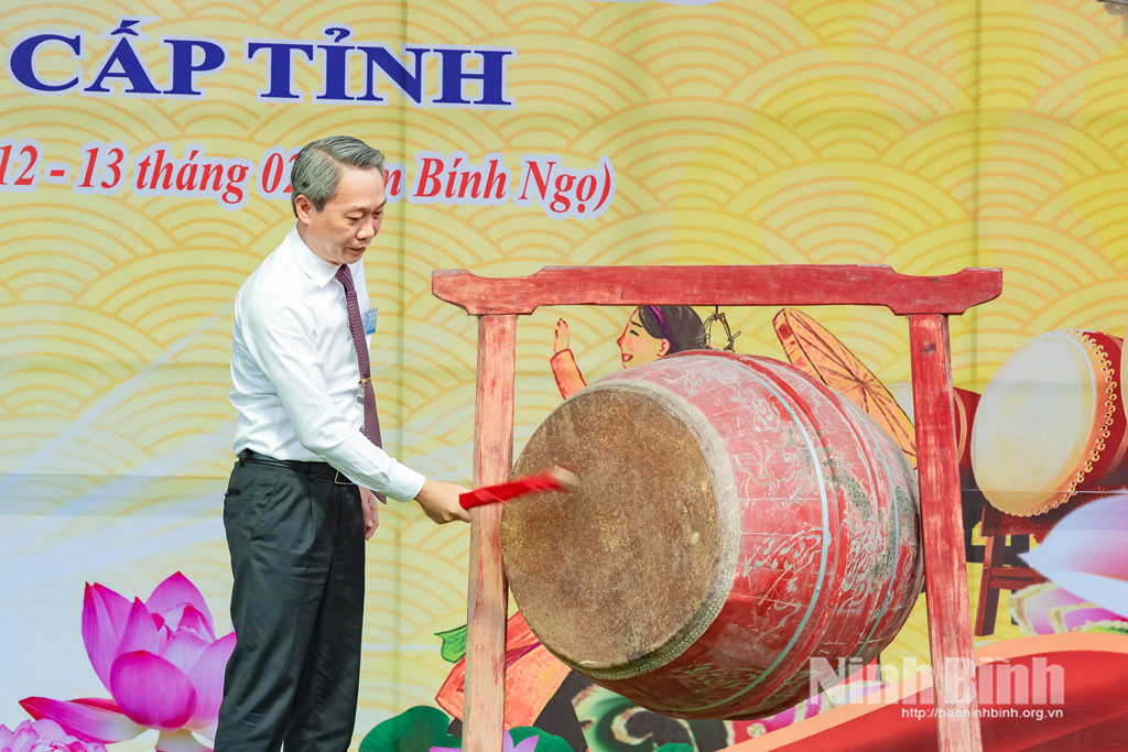 Lãnh đạo xã Gia Viễn đánh trống khai hội.