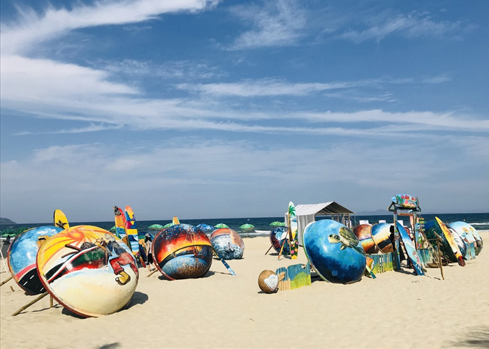 Trưng bày nghệ thuật sắp đặt bên bờ biển. Ảnh: Báo Đà Nẵng
