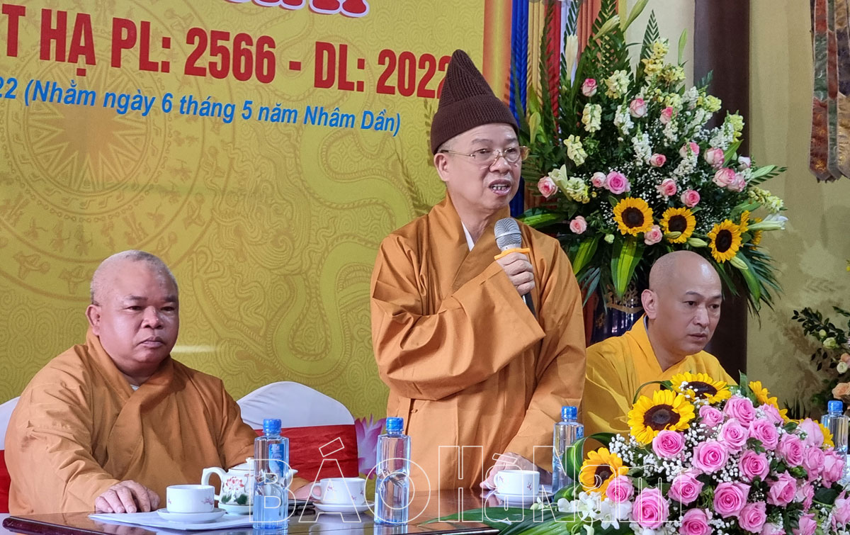 Hòa thượng Thích Thanh Quyết, Phó Chủ tịch Hội đồng Trị sự Trung ương Giáo hội PGVN, Trưởng ban Trị sự GHPG tỉnh phát biểu tại buổi lễ.