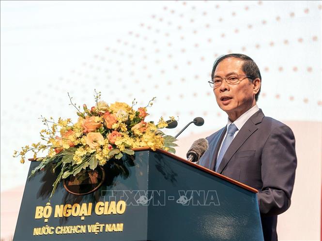 | Bộ trưởng Ngoại giao Bùi Thanh Sơn đọc diễn văn kỷ niệm. |