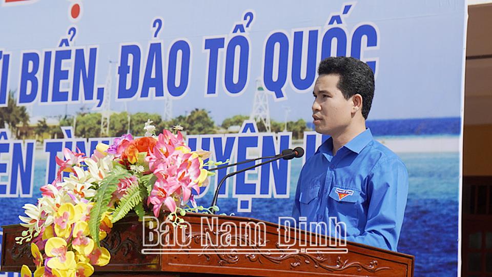 | Đồng chí Triệu Văn Thái, TUV, Bí thư Tỉnh đoàn Nam Định thay mặt tuổi trẻ toàn tỉnh phát biểu hưởng ứng Lễ phát động. |