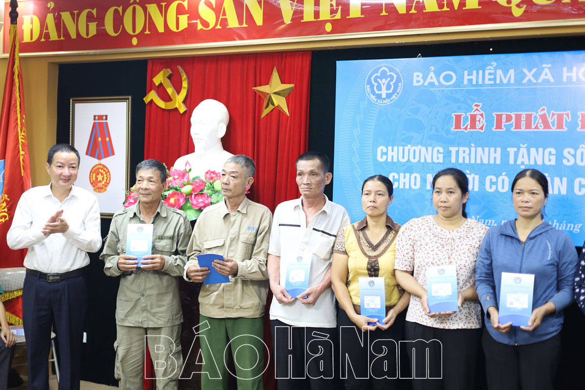 Nhân dịp này, BHXH tỉnh Hà Nam đã dành tặng 25 thẻ BHYT và sổ BHXH tự nguyện cho người dân có hoàn cảnh khó khăn thuộc 2 xã Phù Vân và Tiên Tân, TP. Phủ Lý.