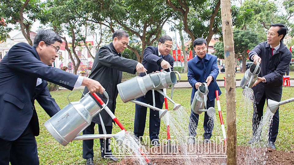 | Các đồng chí: Phạm Gia Túc, Ủy viên BCH Trung ương Đảng, Bí thư Tỉnh ủy; Lê Quốc Chỉnh, Phó Bí thư Thường trực Tỉnh ủy, Chủ tịch HĐND tỉnh, Trưởng đoàn Đoàn đại biểu Quốc hội tỉnh; Phạm Đình Nghị, Phó Bí thư Tỉnh ủy, Chủ tịch UBND tỉnh trồng cây tại khu vực công viên Vị Xuyên (thành phố Nam Định). |