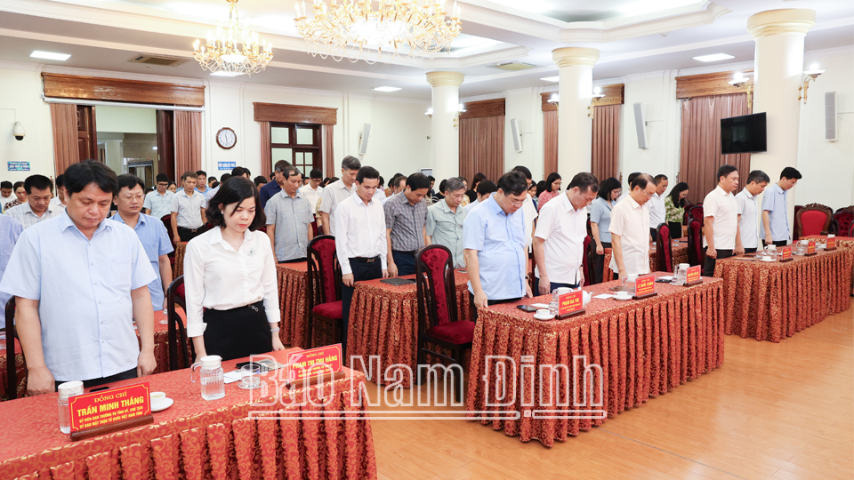 | Các đồng chí lãnh đạo tỉnh và cán bộ công chức, người lao động tưởng niệm các nạn nhân và cán bộ, chiến sĩ hy sinh khi làm nhiệm vụ phòng chống lụt bão, cứu hộ cứu nạn do cơn bão số 3 gây ra. |