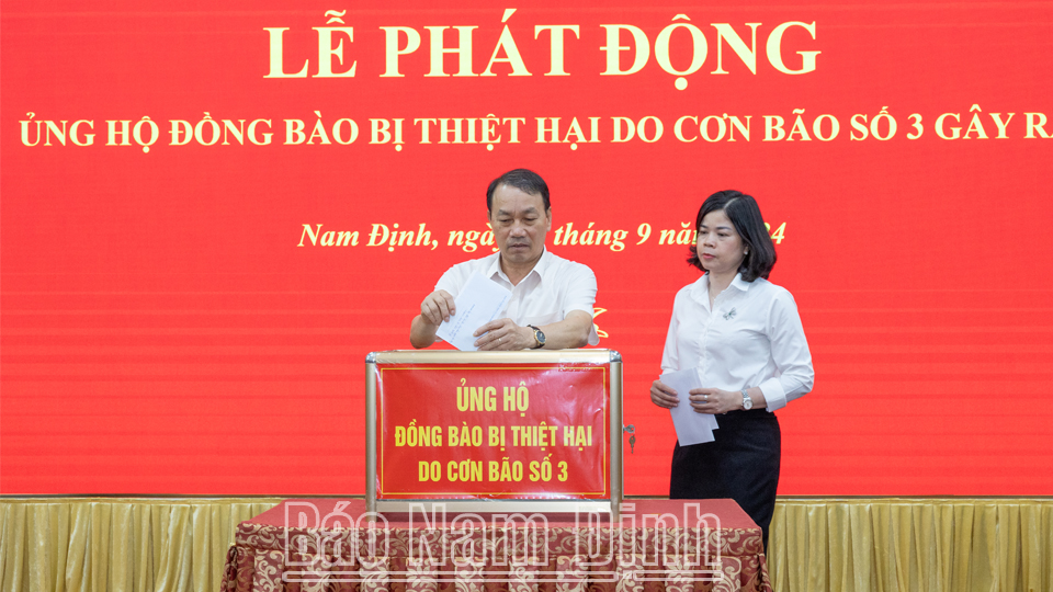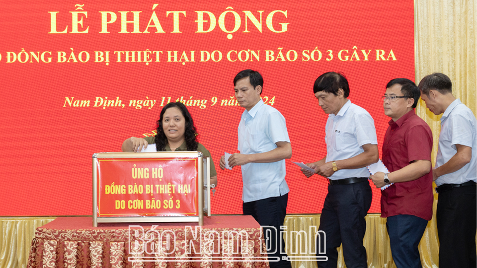 Phát biểu tại lễ phát động, đồng chí Trần Minh Thắng, Ủy viên Ban TVTU, Chủ tịch Ủy ban MTTQ tỉnh thông tin những ngày qua, do ảnh hưởng của cơn bão số 3, các tỉnh, thành phố phía Bắc bị thiệt hại nặng nề. Bão lũ làm nhiều người chết và mất tích, nhiều ngôi nhà bị ngập, sập đổ, hư hỏng và thiệt hại nhiều diện tích lúa, hoa màu, khu vực nuôi trồng thuỷ sản và các công trình hạ tầng, khiến nhiều nơi đang bị chia cắt, nhiều khu vực dân cư bị cô lập… Vừa qua, Ủy ban Trung ương MTTQ Việt Nam đã tổ chức lễ phát động ủng hộ nhân dân bị ảnh hưởng bởi cơn bão số 3. Ủy Ban MTTQ tỉnh Nam Định ban hành Thư kêu gọi, theo đó mỗi cán bộ đảng viên, công chức, viên chức, lực lượng vũ trang, người hưởng lương từ ngân sách ủng hộ 1 ngày lương, người lao động ủng hộ 1 ngày thu nhập…