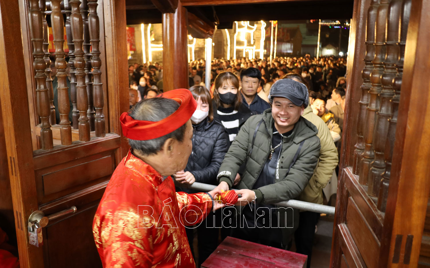 Đúng 22h15 phút, các Thượng tọa, Đại đức của Giáo hội Phật giáo Việt Nam, Giáo hội Phật giáo tỉnh Hà Nam; các đại biểu lãnh đạo, nguyên lãnh đạo Đảng, Nhà nước, của tỉnh, huyện Lý Nhân, xã Trần Hưng Đạo và đại diện người cao tuổi địa phương thực hiện nghi lễ tâm linh trong nội tự đền Trần Thương. Sau khi các nghi thức tâm linh được thực hiện, trong tiết trời xuân ấm áp tại vùng đất thiêng, cầu cho một năm mưa thuận gió hòa, mùa màng tươi tốt, gia đình hạnh phúc, ấm no, 12 cửa phát lương bên ngoài Nghi môn ngoại đền Trần Thương đồng loạt mở cửa phát lương cho nhân dân và du khách thập phương về dự lễ hội.