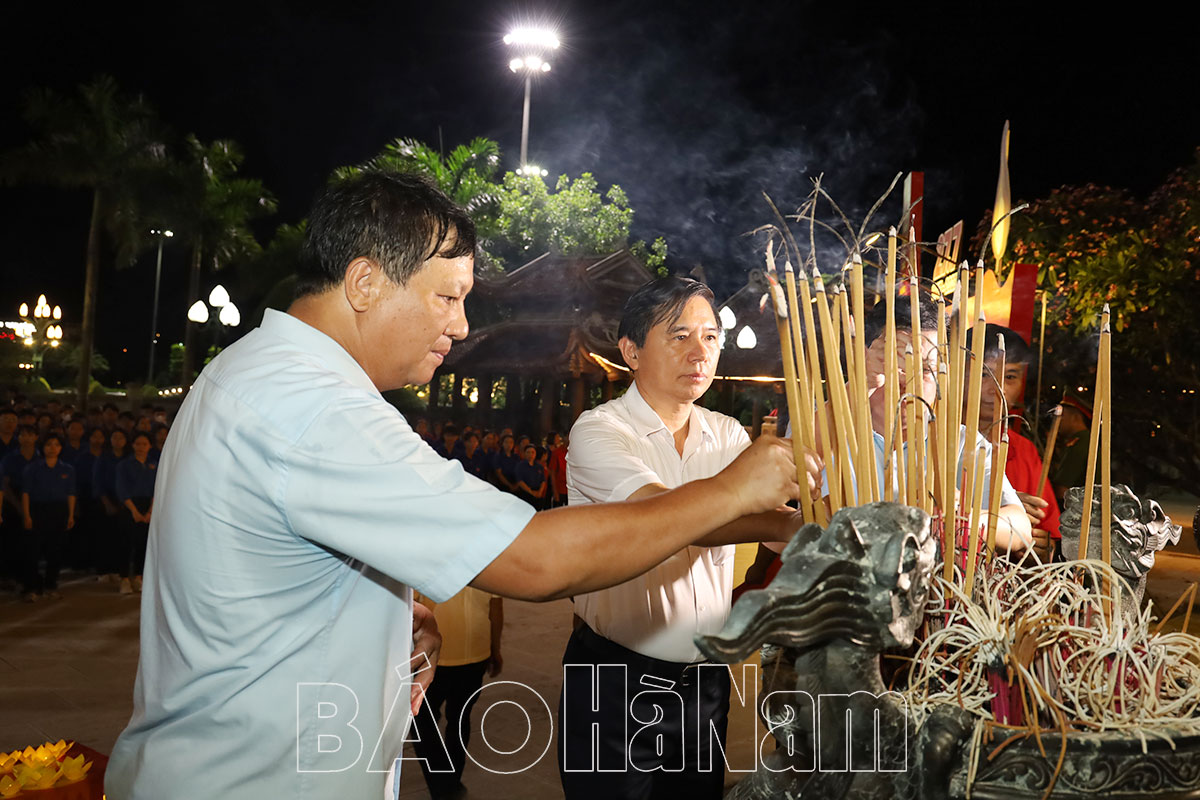 Phát biểu tại buổi lễ, Bí thư Tỉnh đoàn Trần Ngọc Nam bày tỏ lòng thành kính, biết ơn sâu sắc đối với công lao vĩ đại của Chủ tịch Hồ Chí Minh và các anh hùng liệt sĩ, các Mẹ Việt Nam anh hùng, các thương bệnh binh, thân nhân liệt sĩ, gia đình có công với cách mạng. Tuổi trẻ Hà Nam nguyện hứa sẽ đoàn kết một lòng, tiếp nối truyền thống; khơi dậy ý chí, khát vọng trong mỗi đoàn viên, thanh niên; nỗ lực phấn đấu, xung kích tình nguyện, sáng tạo, đem sức trẻ góp phần cùng Đảng bộ và nhân dân xây dựng quê hương ngày càng giàu đẹp, văn minh, hiện đại.