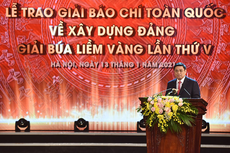 Tối 13-1, tại Nhà hát Lớn Hà Nội, Ban Tổ chức T.Ư chủ trì, phối hợp Báo Nhân Dân, Tạp chí Cộng sản, Đài Truyền hình Việt Nam và Hội Nhà báo Việt Nam tổ chức Lễ công bố và trao Giải báo chí toàn quốc về xây dựng Đảng (Giải Búa liềm vàng), lần thứ 5 - năm 2020.