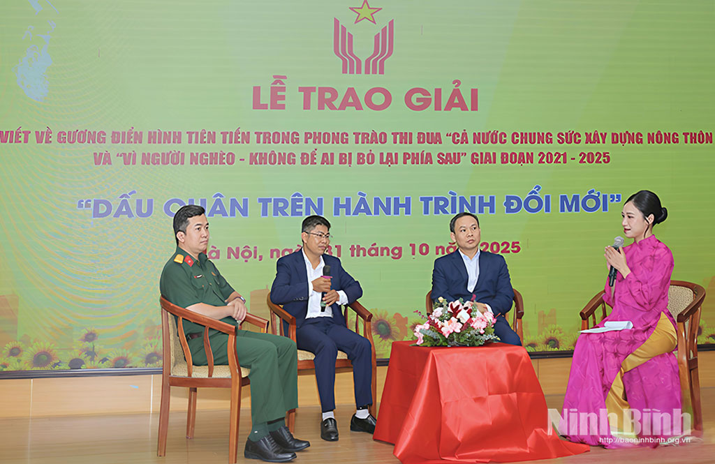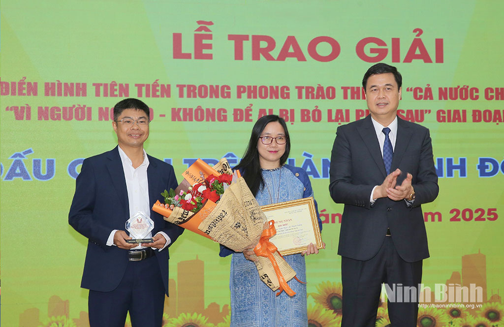 Sáng 31/10, tại Hà Nội, Ban Thi đua - Khen thưởng Trung ương (Bộ Nội vụ) đã tổ chức Lễ trao giải Cuộc thi viết về gương điển hình tiên tiến trong hai phong trào thi đua lớn: “Cả nước chung sức xây dựng nông thôn mới” và “Vì người nghèo - không để ai bị bỏ lại phía sau” giai đoạn 2021-2025. Cuộc thi có chủ đề ý nghĩa là “Dấu chân trên hành trình đổi mới”. Theo đó, loạt bài 3 kỳ “Nối yêu thương, dựng xây những mái ấm bình yên” của nhóm phóng viên Báo và phát thanh, truyền hình Ninh Bình đã vinh dự đạt Giải Khuyến khích.
