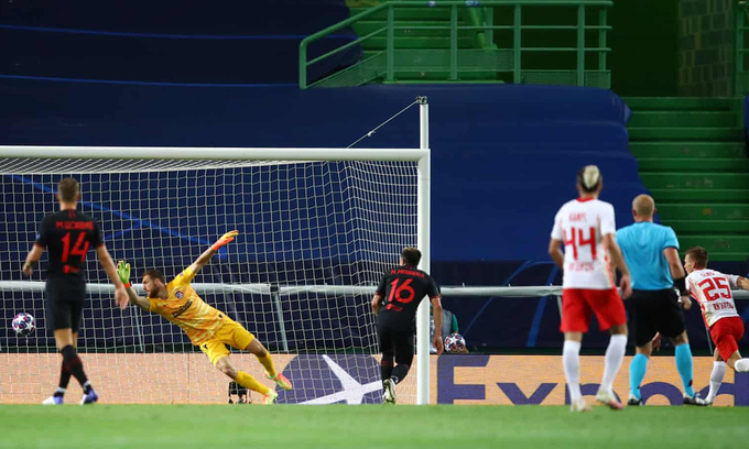 Là đội được đánh giá cao hơn nhưng Atletico lại không tận dụng được tâm lý hưng phấn sau bàn gỡ, dù Simeone tiếp tục làm mới hàng công bằng Alvaro Morata. Đội bóng Tây Ban Nha chơi rình rập và trả giá cho lối đá thận trọng quá mức ở phút 88. Marcel Sabitzer tỉa bóng thoáng sang cánh trái cho Angelino, để hậu vệ trái được cho mượn từ Man City căng ngược lại trung lộ. Tyler Adams, cũng mới vào thay người giữa hiệp hai, băng lên sút một chạm, đưa bóng trúng chân hậu vệ Atletico, đổi hướng và bay vào lưới.