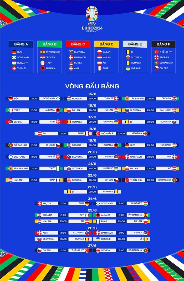 Lịch thi đấu vòng chung kết Euro 2024
