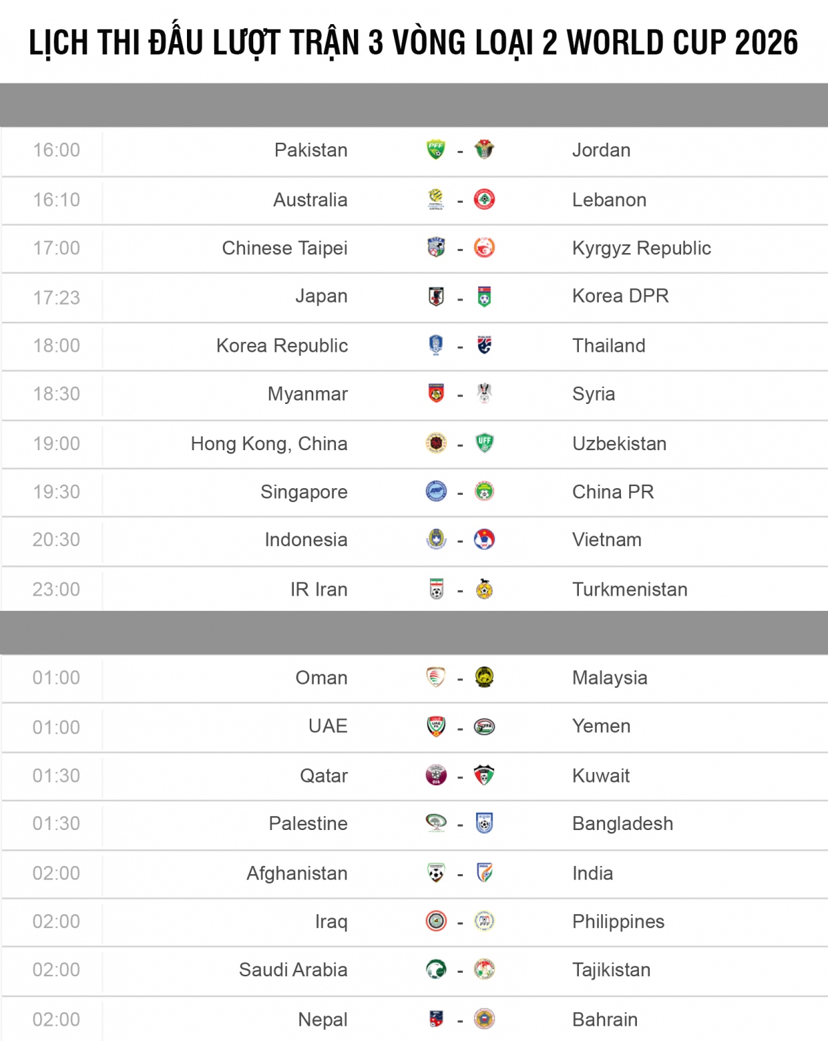 Lịch thi đấu vòng loại 2 World Cup 2026: Thái Lan và Việt Nam gặp thử thách lớn