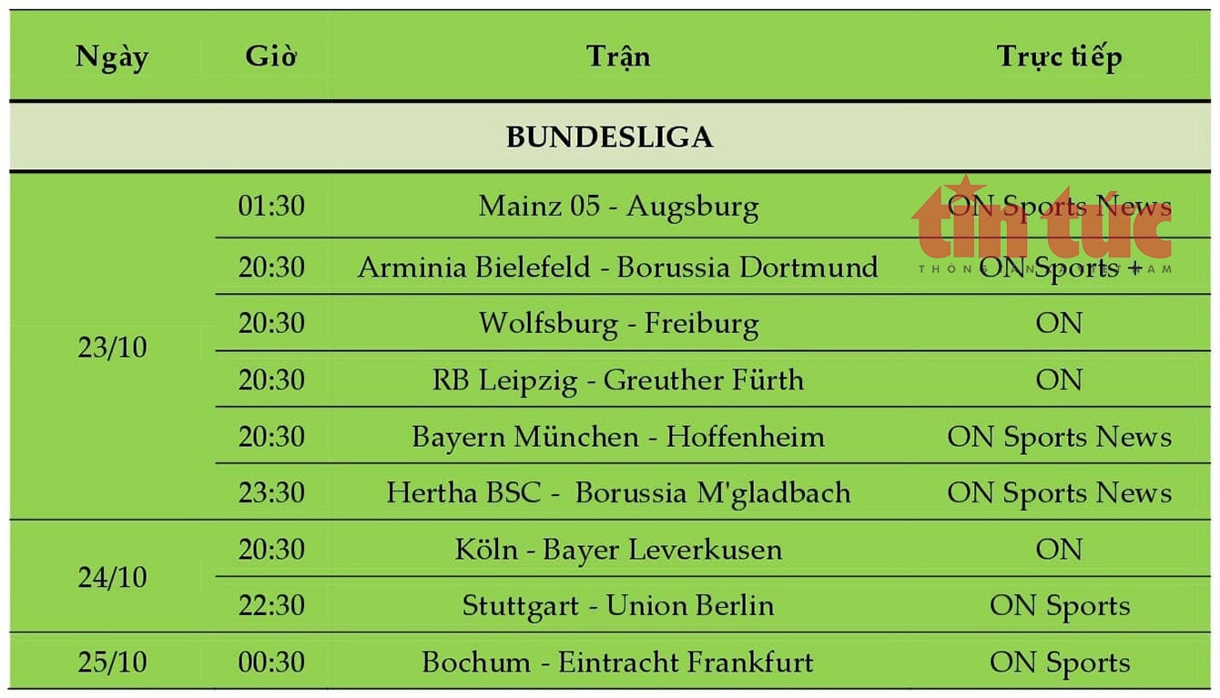 LỊCH THI ĐẤU BÓNG ĐÁ ĐỨC (BUNDESLIGA)