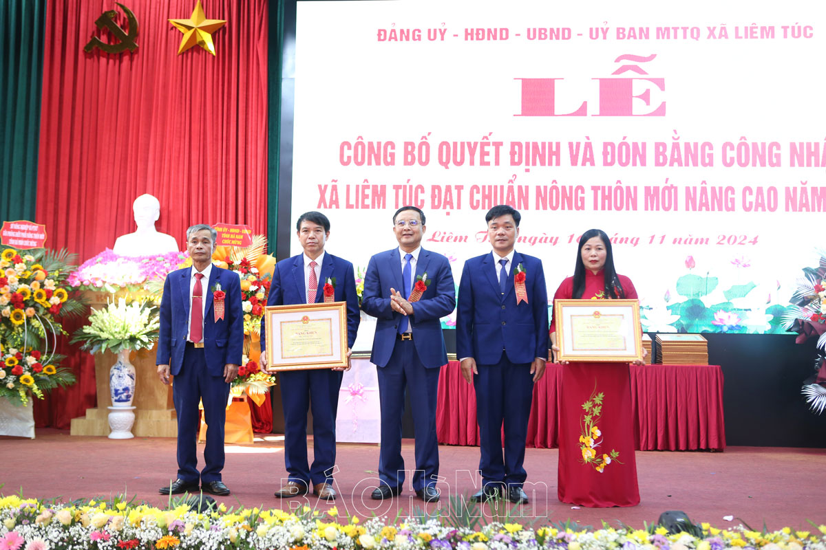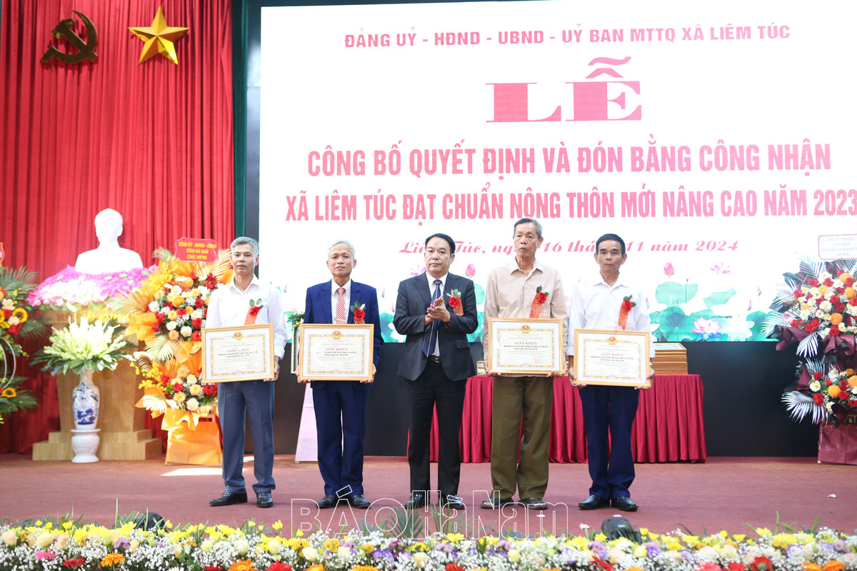 Tập thể, cá nhân có thành tích xuất sắc trong xây dựng NTM tại xã Liêm Túc được nhận Bằng khen của Chủ tịch UBND tỉnh.