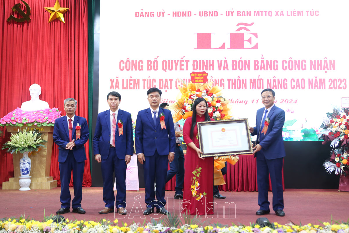 Qua thẩm định của cơ quan chức năng và được Hội đồng thẩm định, đánh giá tỉnh xem xét trình và Chủ tịch UBND tỉnh công nhận xã Liêm Túc đạt chuẩn NTM nâng cao năm 2023.