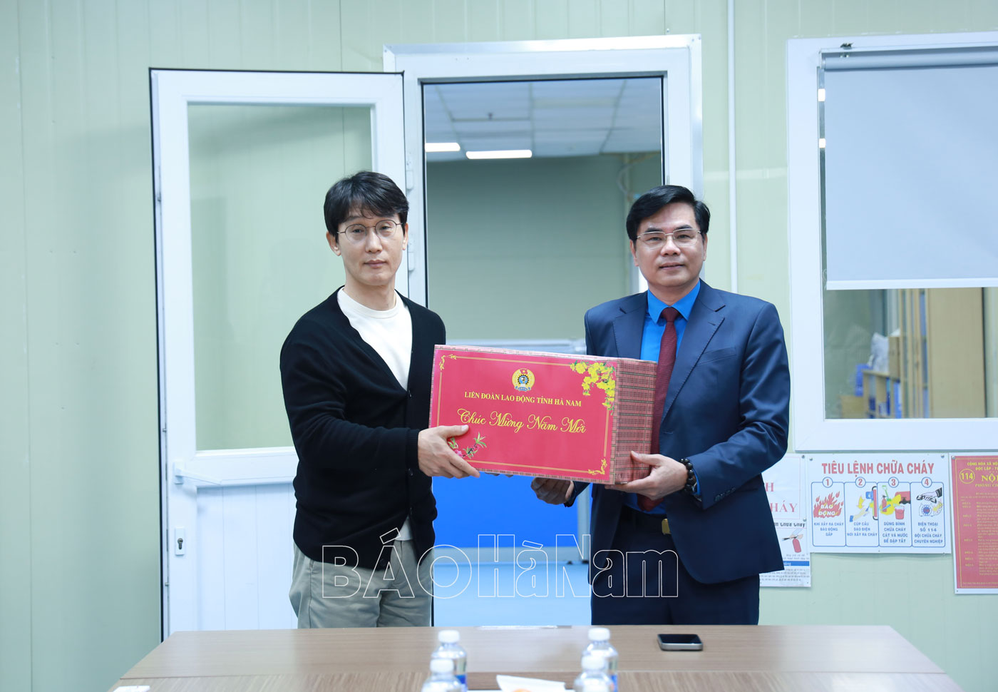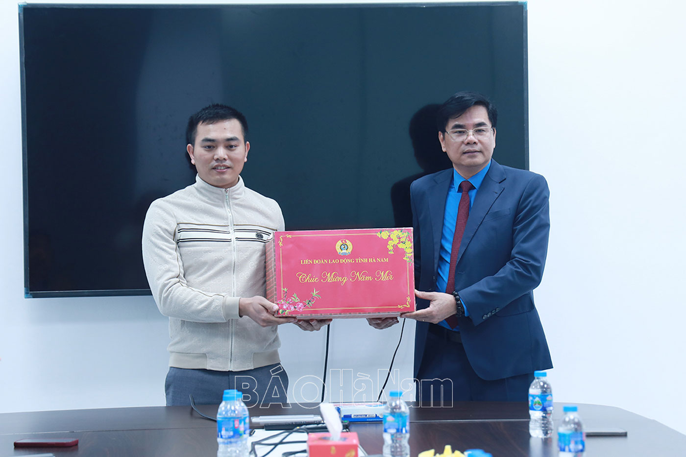 Sáng 3/2, Liên đoàn Lao động (LĐLĐ) tỉnh, Công đoàn các Khu công nghiệp (KCN) tỉnh tổ chức đoàn thăm, tặng quà, chúc Tết, động viên người lao động tại Công ty TNHH JY Plasteel Vina, Công ty TNHH Kangyin Electronic Technology (KCN Châu Sơn, TP Phủ Lý).