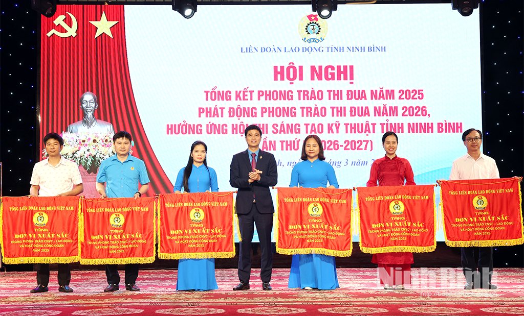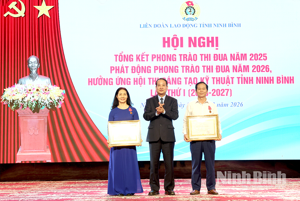 Sáng 27/3, Liên đoàn Lao động (LĐLĐ) tỉnh tổ chức hội nghị tổng kết phong trào thi đua năm 2025, phát động phong trào thi đua năm 2026; hưởng ứng Hội thi sáng tạo kỹ thuật tỉnh Ninh Bình lần thứ I (2026-2027).