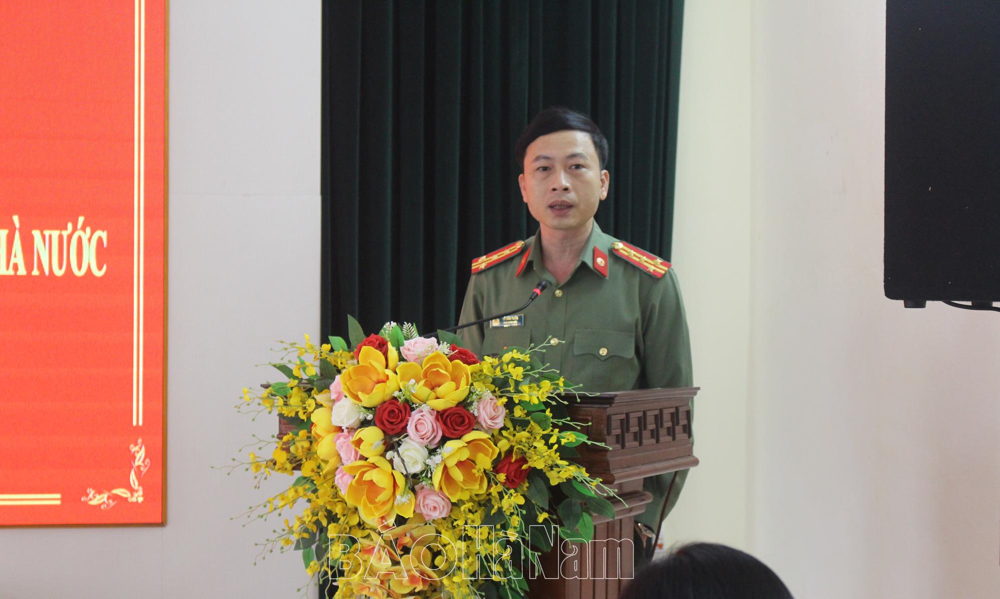 Đại tá Lê Văn Tuấn, Phó Giám đốc Công an tỉnh phát biểu tại hội nghị.