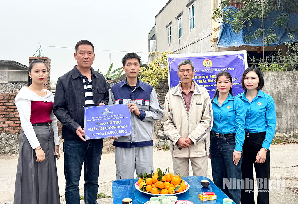 Theo đó, LĐLĐ tỉnh đã hỗ trợ 50 triệu đồng được trích từ Quỹ xã hội Công đoàn tỉnh trao tặng gia đình chị Đinh Thị Liễu. Nhân dịp này, Công ty TNHH Ever Great International đã trao số tiền hỗ trợ 14 triệu đồng; Công đoàn cơ sở xã Gia Vân trao quà cho gia đình chị Liễu với mong muốn góp phần giúp gia đình chị Liễu có mái ấm khang trang, ổn định cuộc sống.