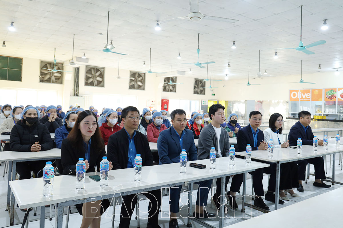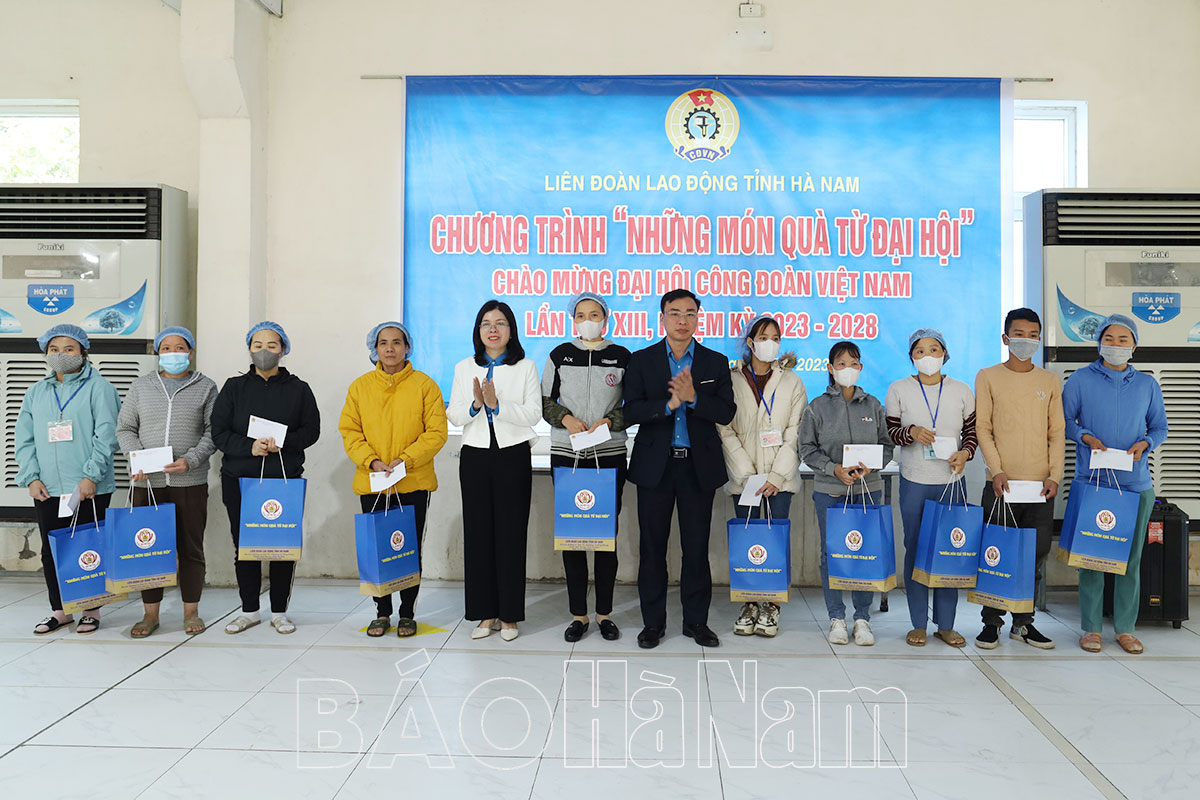 Trong khuôn khổ các hoạt động chào mừng Đại hội Công đoàn Việt Nam lần thứ XIII, nhiệm kỳ 2023-2028, sáng ngày 20/11, Liên đoàn Lao động (LĐLĐ) tỉnh tổ chức chương trình “Những món quà từ Đại hội” tại Công ty TNHH Dream Plastic, Khu công nghiệp Châu Sơn (TP Phủ Lý). Dự chương trình có lãnh đạo LĐLĐ tỉnh, Công đoàn các Khu công nghiệp tỉnh, Công ty TNHH Dream Plastic, cùng các công nhân lao động được tặng quà.