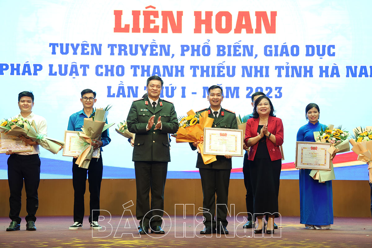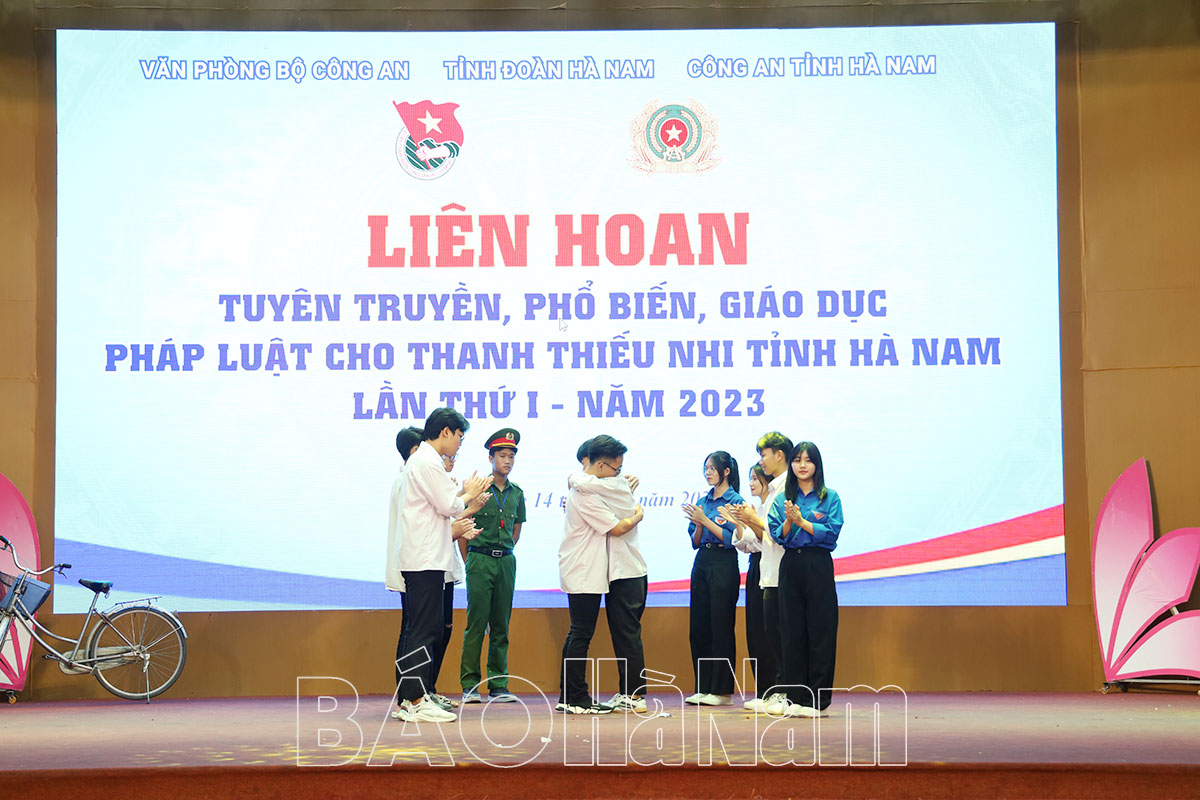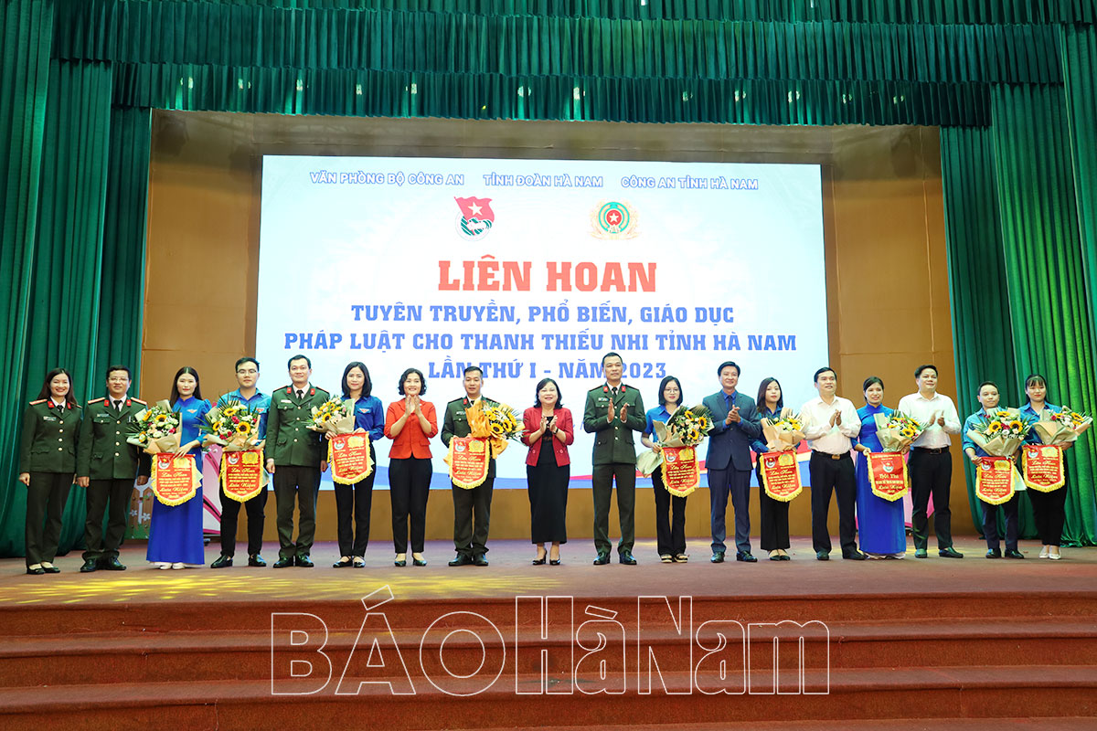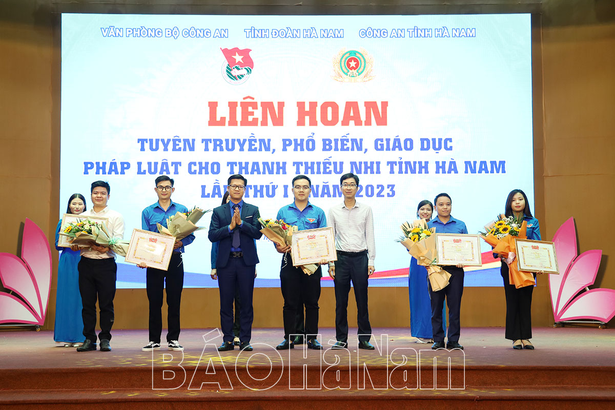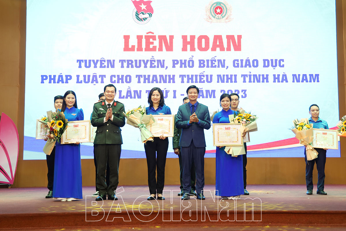 Thiếu tướng Vũ Hữu Tài, Phó Chánh Văn phòng Bộ Công an và đồng chí Lê Thị Thanh Hà, Ủy viên BTV Tỉnh ủy, Trưởng Ban Tuyên giáo Tỉnh ủy tặng Bằng khen và hoa chúc mừng Đoàn Thanh niên Công an tỉnh giành giải Nhất tại Liên hoan.Đoàn Khối các cơ quan tỉnh, Thị đoàn Duy Tiên và Huyện đoàn Lý Nhân đạt giải Nhì tại Liên hoan.Các đơn vị đạt giải Ba tại Liên hoan.