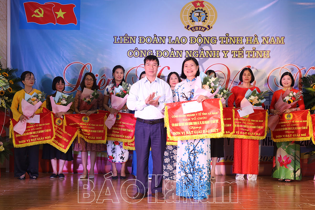 Phó Giám đốc Sở Y tế Trương Thanh Phòng chúc mừng Bệnh viện Mắt tỉnh Hà Nam vinh dự giành giải Nhất tại liên hoan.Chủ tịch Công đoàn ngành Y tế Lục Việt Hoa trao tặng giải Ba cho đội thi đến từ Trung tâm Kiểm soát bệnh tật Hà Nam, Bệnh viện Y học cổ truyền và Trường Cao đẳng Y tế Hà Nam.
