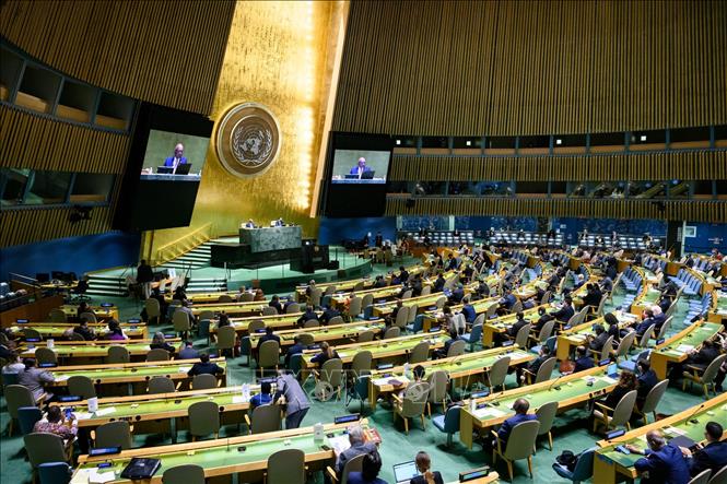 Toàn cảnh phiên họp Đại hội đồng LHQ bầu 18 thành viên Hội đồng Nhân quyền tại New York, Mỹ ngày 14/10/2021.