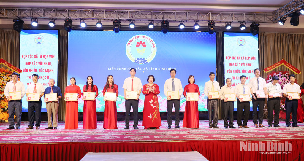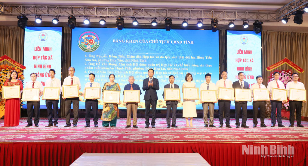 Ghi nhận những thành tích của các tập thể, cá nhân có nhiều đóng góp cho phong trào HTX, Liên minh HTX Việt Nam đã trao kỷ niệm chương “Vì sự nghiệp phát triển HTX" cho 30 cá nhân và Chủ tịch UBND tỉnh tặng Bằng khen cho 5 tập thể , 10 cá nhân có thành tích xuất sắc trong phong trào phát triển KTTT. Nhân dịp này, Liên minh HTX tỉnh công nhận HTX tiêu biểu, sản phẩm tiêu biểu của HTX và trao giải Ngôi sao HTX.