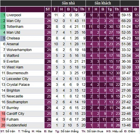 Liverpool ra quân với áp lực lớn khi bị Man City tạm chiếm ngôi đầu. Dù vậy, sau 90 phút đón tiếp các vị khách đang đứng ở giữa bảng xếp hạng, đội chủ sân Anfield đã giành trọn 3 điểm với chiến thắng 3-0, qua đó giành lại ngôi đầu bảng với 3 điểm nhiều hơn Man City. Sadio Mane, Wijnaldum và Salah lập công cho đội chủ nhà ở các phút 24, 34 và 48.
