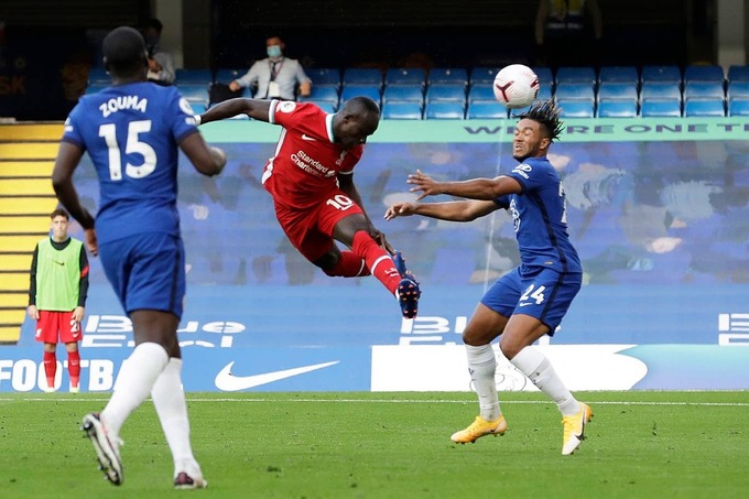 Sadio Mane tỏa sáng với cú đúp cho Liverpool, chỉ trong bốn phút. Một bàn đến từ tình huống phối hợp sắc nét, một bàn trừng phạt sai lầm của thủ môn Kepa Arrizabalaga. Hai bàn thắng ghi khi Chelsea chơi với 10 người, do trung vệ Andreas Christensen dính thẻ đỏ và bị truất quyền thi đấu cuối hiệp một.