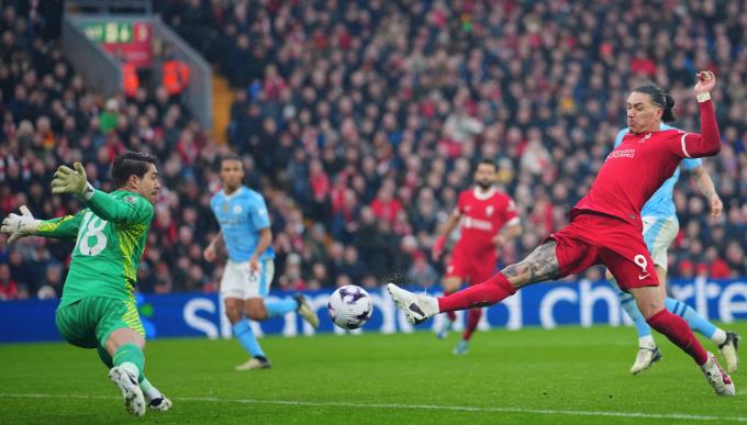 Liverpool vùng lên sau bàn thua. Họ đẩy lui Man City và có thời điểm kiểm soát bóng tới 87%. Tuy nhiên, đoàn quân của Klopp thiếu đột biến ở những pha bóng cuối cùng. Đội chủ nhà đến gần bàn gỡ nhất khi Luis Diaz sút chệch cột dọc trong gang tấc ở phút 42. Trận này, CĐV Liverpool chờ đợi Mohamed Salah đá chính trở lại, nhưng tiền đạo Ai Cập xuất phát trên ghế dự bị. Trong bối cảnh đó, Nunez có lẽ là niềm hy vọng lớn nhất. Nhưng dù nỗ lực, tiền đạo Uruguay chưa thể tạo ra quá nhiều khác biệt, và anh quá nhiều lần mắc bẫy việt vị.