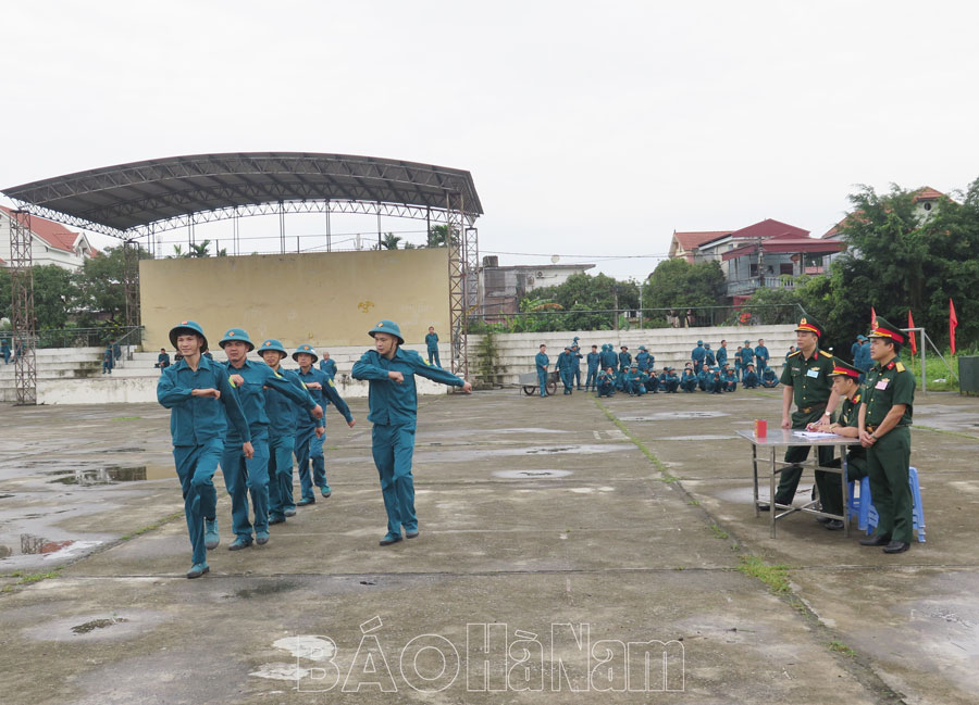 Ban CHQS huyện Kim Bảng kiểm tra công tác huấn luyện lực lượng dân quân.